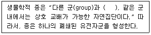 다음은 생물학적 종의 개념 설명이다. ( )안에 가 장 적합한 것은?