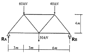 다음 그림과 같은 트러스의 반력 RA 와 RB 는?