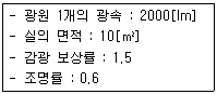 다음과 같은 조건에서 사무실의 평균조도를 800[lx]로 설계하고자 할 경우, 광원의 필요수량은?