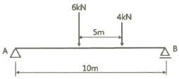 그림과 같은 이동하중이 스팬 10m의 단순보위를 지날 때 절대 최대 휨모멘트를 구하면?