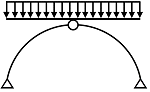 그림과 같은 3회전단의 포물선 아치가 등분포하중을 받을 때 아치부재의 단면력에 관한 설명으로 옳은 것은?