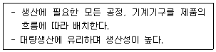 다음 설명에 알맞은 공장건축의 레이아웃(layout) 형식은?