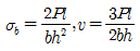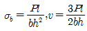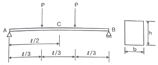 그림과 같은 단면의 단순보에서 보의 중앙점 C단면에 생기는 휨응력 σb와 전단응력 v의 값은?