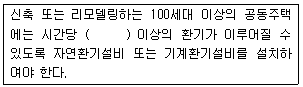 다음은 공동주택의 환기설비에 관한 기준 내용이다. ()안에 알맞은 것은?(관련 규정 개정전 문제로 여기서는 기존 정답인 1번을 누르면 정답 처리됩니다. 자세한 내용은 해설을 참고하세요.)