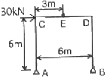 다음 그림과 같이 수평하중 30kN이 작용하는 라멘구조에서 E점에서의 휨모멘트 값(절대값)은?