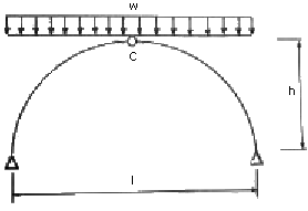등분포하중을 받는 그림과 같은 3회전단아치에서 C점의 전단력을 구하면?
