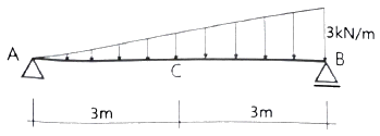 다음 그림과 같은 보에서 중앙점(C점)의 휨모멘트 (Mc)를 구하면?