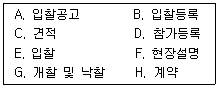일반경쟁입찰의 업무순서에 따라 보기의 항목을 옳게 나열한 것은?