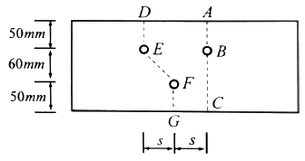 다음 그림과 같은 구멍 2열에 대하여 파단선 A-B-C를 지나는 순단면적과 동일한 순단면적을 갖는 파단선 D-E-F-G의 피치(s)는? (단, 구멍은 여유폭을 포함하여 23mm임)