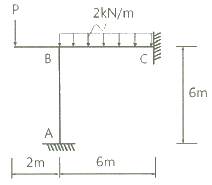 그림과 같은 라멘의 AB재에 휨모멘트가 발생하지 않게 하려면 P는 얼마가 되어야하는가?