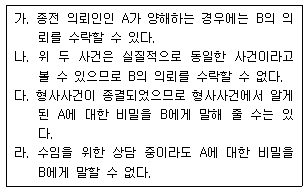 변호사 甲은 폭행치사 혐의로 구속된 A의 사건을 수임하여 열심히 변론하였으나 유죄로 확정되었다. 그 후 위 폭행치사의 피해자 유족인 B가 변호사 甲을 찾아와서 성실하게 변론하는 모습에 감동받았다고 하면서 A를 상대로 위 폭행치사 사건으로 인한 손해배상청구의 소를 제기하려고 하는데 이를 대리하여 달라는 의뢰를 하였다. 이 때 甲이 취할 수 있는 행위에 관한 설명 중 옳은 것을 모두 고른 것은? (다툼이 있는 경우 판례에 의함)