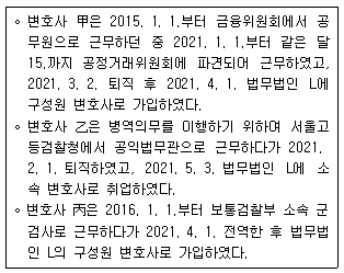 변호사 丙은 법무법인 L이 국방부 보통군사법원에 계속 중인 피고인 C에 대한 성폭력 사건을 수임할 경우 2021. 5. 3. 그 사건의 담당변호사로 지정될 수 없다.