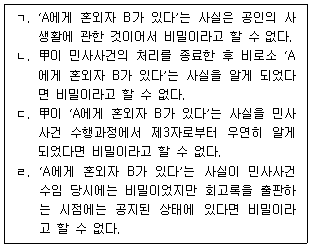 변호사 甲은 자신이 처리한 사건들을 바탕으로 회고록을 집필, 출판하였다. 회고록에는 甲이 수임하여 처리하였던 유명 정치인 A의 민사사건이 포함되어 있는데, 여기에는 'A에게 혼외자 B가 있다'는 사실이 기술되어 있다. 「변호사법」상 비밀유지의무에서의 비밀에 관한 설명 중 옳지 않은 것을 모두 고른 것은?