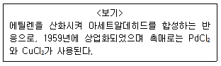 전이금속 촉매를 이용한 상업화 공정 중 <보기>가 설명 하는 것은?