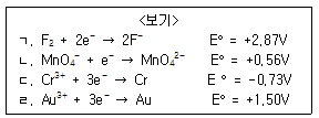 <보기>에 나타난 표준 환원 전위에 따라 산화력이 큰 순서대로 나열된 것은?
