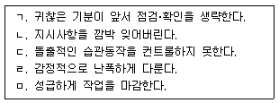 인간의 의식수준 5단계 모형에서 Ⅰ단계(Phase Ⅰ)에서의 동작‧조작 에러 사례를 <보기>에서 모두 고른 것은?