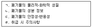 「폐기물관리법 시행규칙」에 따라 지정폐기물로 인한 사고 예방을 위하여 작성해야 하는 폐기물 유해성 정보자료의 항목을 <보기>에서 모두 고른 것은?