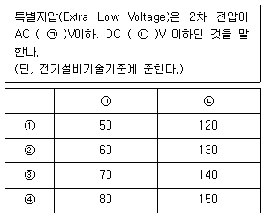 109 ( ) 안에 들어갈 말로 옳은 것은? (순서대로 ①, ②, ③, ④) 110 <그림>은 통전경로가 왼손-양발 전류 경로일 때 교류(15Hz –100Hz) 전류가 인체에 미치는 영향을 나타낸 것이다. 강한 비자의적 근육의 수축, 호흡곤란, 회복 가능한 심장 기능의 장애 등이 발생할 수 있는 영역은? 111 ( ) 안에 들어갈 말로 옳은 것은? 112 정전기 발생에 영향을 주는 요인에 관한 설명으로 옳은 것은? 113 <그림>과 같은 구조의 건축물 복도에 설치해야 하는 복도통로유도등의 최소 수량은? (단, <그림>에 생략된 요소는 무시한다.) 114 <그림>은 연구실의 멀티 콘센트(단상 220V)에 문어발식으로 접속하여 연결된 모든 전기 제품을 동시에 사용하는 상황을 나타낸 것이다. <그림>의 상황에 관한 설명으로 옳은 것은? (단, 역률은 모두 1이다.) 115 다음은 한국전기설비규정(KEC)에서 전선의 색상을 구분한 것이다. ( ) 안에 들어갈 말로 옳은 것은? (순서대로 ①, ②, ③, ④) 116 ( ) 안에 들어갈 말로 옳은 것은? 117 옥내소화전 방수압력 측정방법으로 옳은 것을 <보기>에서 모두 고른 것은? 118 연구실안전환경관리자가 이동 및 휴대장치를 사용한 전기작업을 할 때 조치사항을 <보기>에서 모두 고른 것은? 119 <그림>은 보호(기기)접지를 한 저압전동기 회로에서 누전이 발생한 경우를 나타낸 것이다. 전동기 외함에 걸리는 전압의 크기에 관한 설명으로 옳은 것은? (단, 누전전류가 흐르는 경로 상에 변압기 접지 저항과 기기접지 저항 이외의 다른 저항은 무시한다.) 120 한국전기설비규정(KEC)에서는 저압 옥내배선의 중성선 단면적에 관한 사항을 <보기>와 같이 규정하고 있다. ( ) 안에 들어갈 말로 옳은 것은? (순서대로 ①, ②, ③, ④)