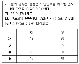 한국전기설비규정(KEC)에서는 저압 옥내배선의 중성선 단면적에 관한 사항을 <보기>와 같이 규정하고 있다. ( ) 안에 들어갈 말로 옳은 것은? (순서대로 ①, ②, ③, ④)