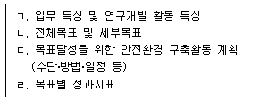 연구실 안전환경 목표를 달성하기 위한 활동 추진계획 수립 시 반영‧검토해야 하는 항목을 <보기>에서 모두 고른 것은?