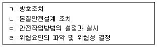 <보기>의 기계 재해를 방지하기 위한 대책을 순서대로 나열한 것은?