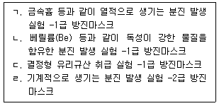 유해인자가 발생되는 실험 종류와 실험자가 착용해야 하는 방진마스크의 연결이 옳은 것을 <보기>에서 모두 고른 것은? (단, 노출수준에 따라 등급이 달라지는 경우는 제외한다.)