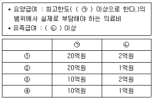 <보기>는 「연구실 안전환경 조성에 관한 법률 시행규칙」에 따라 연구주체의 장이 가입하여야 하는 보험의 보험급여 종류 및 보상금액에 관한 내용이다. ( ) 안에 들어갈 말로 옳은 것은?