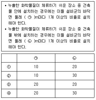「고압가스 특정제조의 시설‧기술‧검사‧감리‧정밀 안전검진기준」에서는 가스누출검지경보장치의 검출부 설치장소 및 설치개수를 규정하고 있다. ( ) 안에 들어갈 숫자로 옳은 것은?