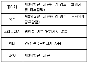 다음은 시험‧연구용 LMO의 정보이다. 이를 사용하여 실험을 수행할 때 생물안전 확보를 위하여 준수해야 하는 사항으로 옳지 않은 것은?