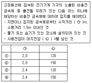 <보기>는 「산업안전보건기준에 관한 규칙」에서 규정하는 감전 위험 방지를 위한 접지사항이다. ( ) 안에 들어갈 숫자로 옳은 것은?