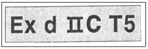 <보기>는 방폭전기기계기구 표시의 예시이다. 'Ex d'와 'T5'의 의미로 옳은 것은?