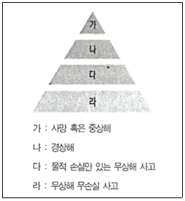 <그림>은 버드의 재해 발생 비율을 나타낸 것이다. '가 : 나 : 다 : 라'의 비율로 옳은 것은?