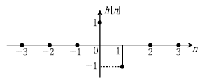 그림과 같은 임펄스 응답 h [n]을 갖는 선형 시불변 이산시스템에서 입력신호 x [n]에 대한 출력신호를 y [n]이라고 할 때, 이에 대한 설명으로 옳지 않은 것은? (단, h [0]=1, h [1]=-1이고 그 외의 모든 n에 대해서는 h [n]=0이다)