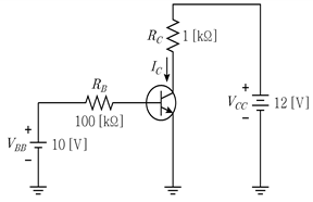 다음 BJT 증폭회로에서 컬렉터 전류 IC[mA]는? (단, 다이오드의 순방향 전압강하는 0.7[V], 직류 전류이득 βDC=100이고, 저항성분은 무시한다)