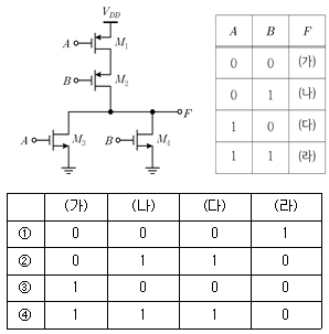 다음 논리게이트 회로의 진리표에서 입력 A, B에 대한 출력 F로 옳은 것은?