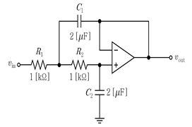 다음 저역통과필터 회로에서 차단 주파수 [Hz]는? (단, 연산증폭기는 이상적이다)