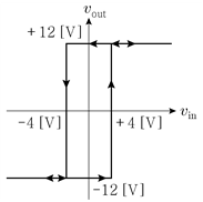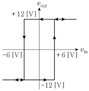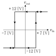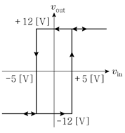 다음 슈미트 트리거(Schmitt trigger) 회로의 입출력 전달특성 그래프로 옳은 것은? (단, 양의 포화전압 +12[V], 음의 포화전압 -12[V], 연산증폭기는 이상적이다)