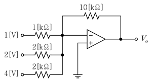 다음 반전 증폭기 응용 회로에서 출력전압 Vo[V]는? (단, 연산 증폭기는 이상적이다)