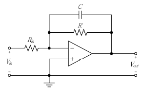 인 조건을 만족하는 C[㎌]은? (단, 연산증폭기는 이상적이며, Rin =R = 100 [ kΩ]이다)