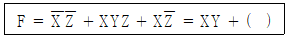 부울 대수식 F를 다음과 같이 등가변환할 때, 괄호에 들어갈 내용으로 옳은 것은?