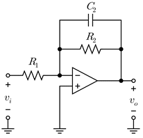 다음 증폭기 회로의 주파수 응답 특성 곡선으로 옳은 것은? (단, 연산 증폭기는 이상적인 소자이다)