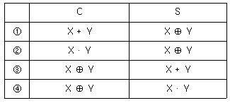 입력 X와 Y 합 S(sum)와 캐리 C(carry)를 출력하는 반가산기 회로에서 출력 C와 S의 논리식은? (단, 입력 X와 Y는 1비트 2진 입력이다.)