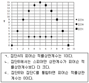 두 변인 X와 Y에 대한 16명의 개인별 점수를 표기한 것이다. 두 변인 간의 상관에 관한 설명으로 옳은 것을 모두 고른 것은?
