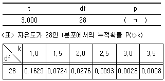 '스트레스는 남녀 간에 차이가 있을 것이다'라는 연구가설을 검증하기 위해 남학생과 여학생을 각각 15명씩 표집하여 스트레스를 측정한 후 t검정을 실시하였다. 'ㄱ'에 해당하는 값은?