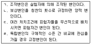 독립변인에 관한 설명으로 옳은 것을 모두 고른 것은?