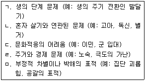 DSM-5는 부가적으로 '임상적 주의가 필요한 기타 문제'에서 한 개인이 처한 '사회환경과 연관된 문제'들을 다루고 있는데, 이 범주에 해당하는 것을 모두 고른 것은?(오류 신고가 접수된 문제입니다. 반드시 정답과 해설을 확인하시기 바랍니다.)
