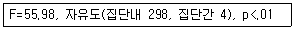 일원변량분석(one way ANOVA) 결과에 대한 해석과 통계치를 논문에 제시할 때 옳은 것은?