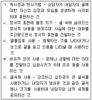 사이버 상담의 기법과 이에 관한 설명이 옳은 것을 모두 고른 것은?