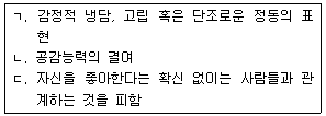 다음 진단기준에 해당하는 성격장애를 순서대로 바르게 나열한 것은?