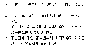 공분산분석의 기본 가정으로 옳은 것을 모두 고른 것은?